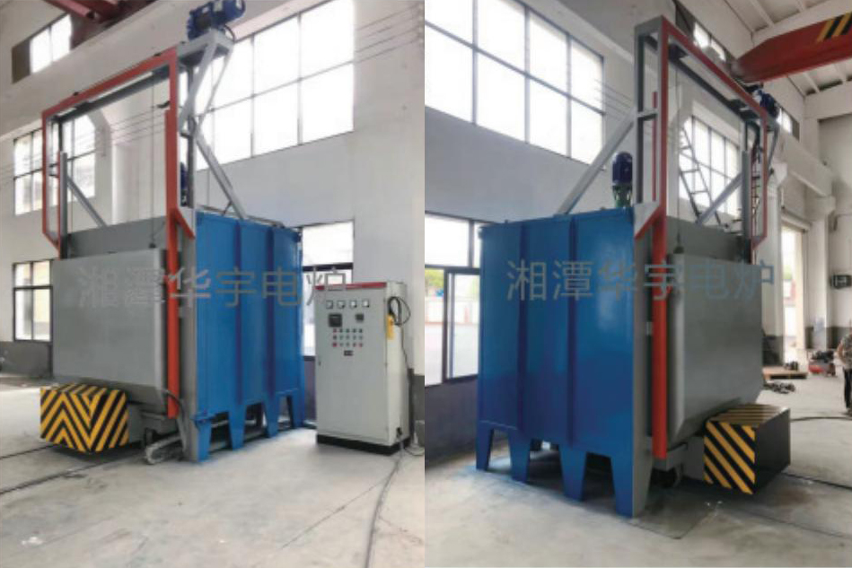 采用燃氣或電加熱,主要用于鋼件在空氣中進行淬火、正火加熱工藝用,主要由爐體、電動臺車、電動爐門、電熱系統、臺車密封機構、溫度控制系統等組成。