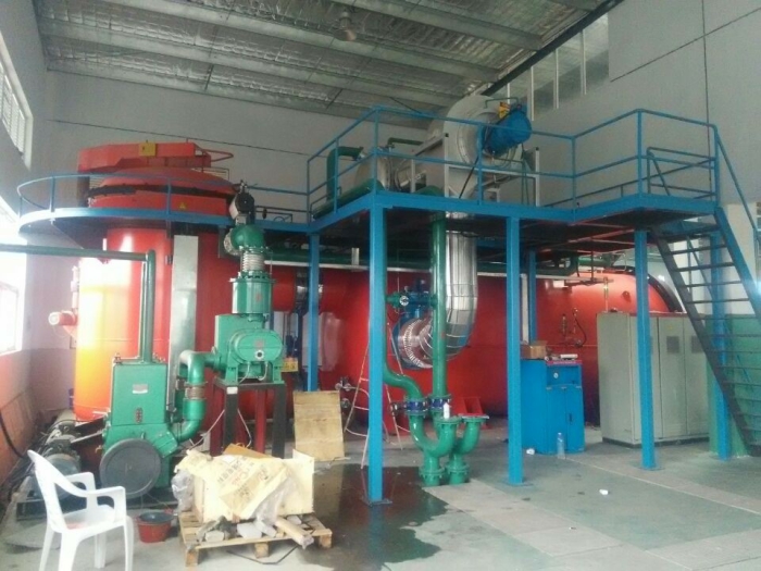 本設備由加熱爐、物料受熱系統(tǒng)及氣體循環(huán)系統(tǒng)、真空系統(tǒng)、自動充氣系統(tǒng)、內(nèi)循環(huán)氣體冷卻裝置,二次水冷系統(tǒng)、安全保障及報警系統(tǒng)、計算機及PLC控制系統(tǒng)、物料進出爐系統(tǒng)、爐前小車、液壓系統(tǒng)等組成。